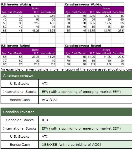 If you are an American who has access to one of the low-cost versions of these funds and Mr. Nachmany’s description applies to you, then by all means they will do the job for you. If you are a Canadian, given the cost of the available lifecycle fund, or an American/Canadian who would like to overcome some of the problems mentioned, I will describe a model that you could experiment with to arrive at a customized solution that is right for you.