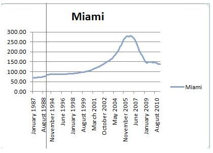 As far as Florida trend is concerned, a graphical view of the Case Shiller data for Miami, readily shows that prices are back to late 2002 levels, but still above the 1987-2000 trend-line.