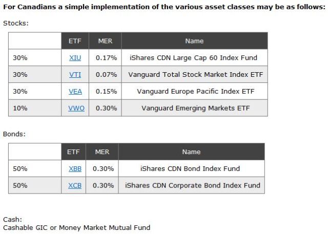 *as noted above Cash may be implemented with either Tax-exempt VMMXX or Taxable VWITX from Vanguard or other similar funds.