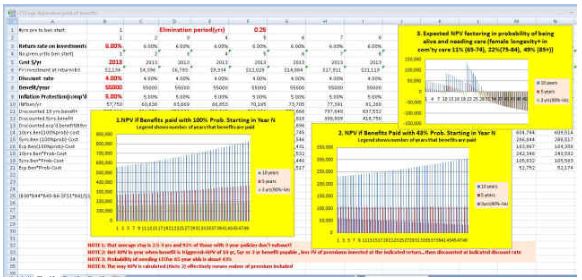 Such NPV calculations, even if input assumptions are uncertain, might be a good way of comparing different LTCI policies.