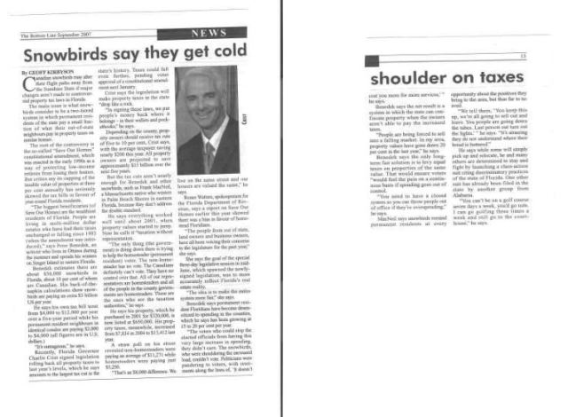 “Snowbirds say they get cold shoulder on taxes” (Interviewed by Geoff Kirbyson in The Bottom Line,September 2007)