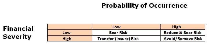 -the probability and financial impact of a risk determines whether we bear it, reduce it, transfer/insure against it, avoid/remove it