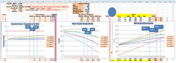 I personally found this spreadsheet a useful tool to explore various scenarios given my circumstances. I hope that it might also be useful to other retirees to explore their asset allocation space in their search for a solution that they can live with in retirement. (Comments welcome whether you agree or not.)