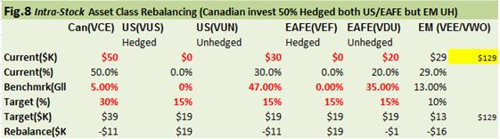 I see a lot of rebalancing in Figs. 4-8, with target percent values, for Can(VCE) US(VUS) US(VUN) EAFE(VEF) EAFE(VDU) EM (VEE/VWO)